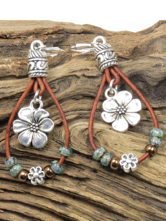Ethnic Vintage Floral Pattern Leather Earrings Western Boho Dress Jewelry QAR21