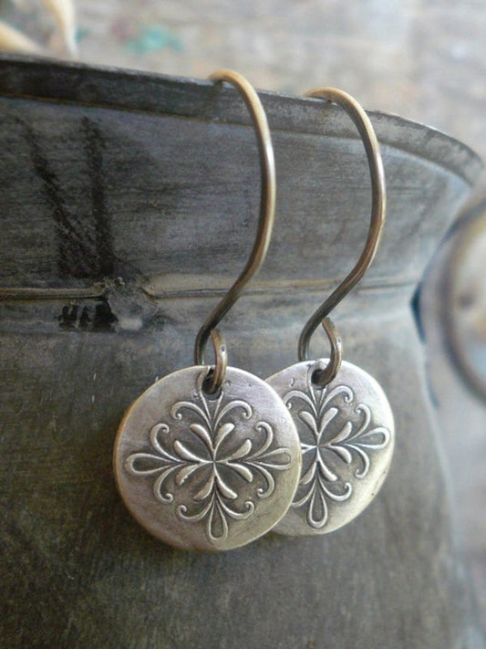 Vintage Natural Ethnic Floral Pattern Embossed Earrings Boho Vacation Jewelry QAR86
