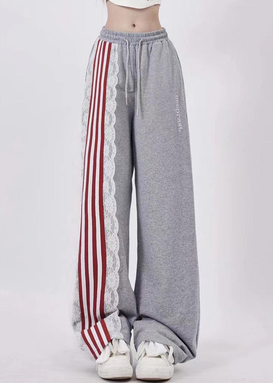 French Striped Pockets High Waist Cotton Wide Leg Pants Summer ZL029