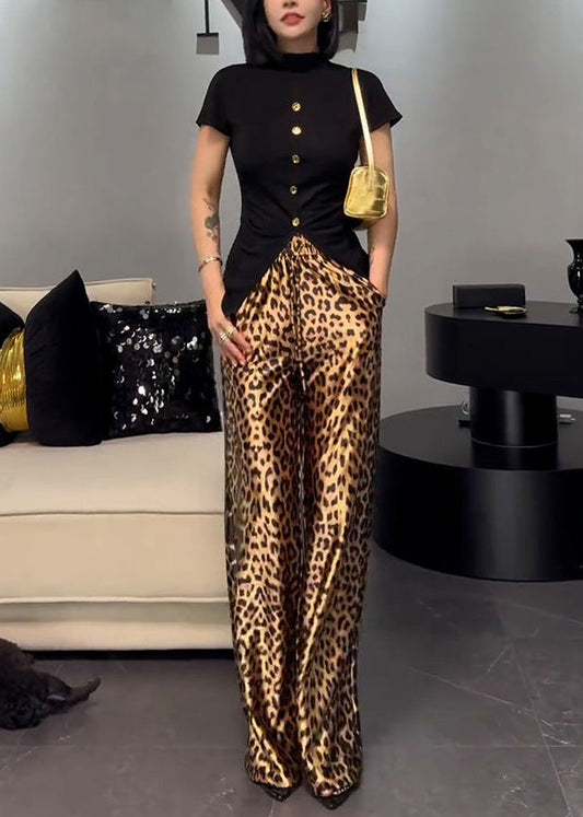 French Wear On Both Sides Tops And Leopard Pants Cotton Two-Piece Set Summer ZL016