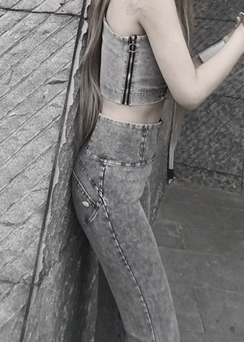 New Grey Zippered High Waist Knit Flare Bottoms Summer KK002