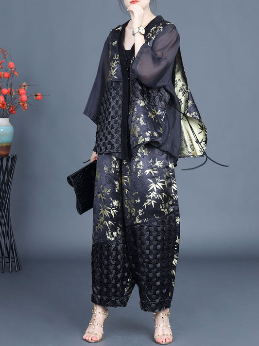 Women Vintage Irregular Flower Long Shirt+Pants KL1043