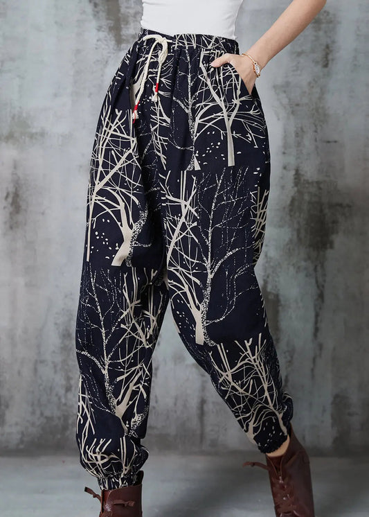 Casual Black Oversized Print Cotton Harem Pants Spring JK1044