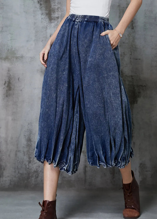 Casual Blue Oversized Wrinkled Denim Wide Leg Pants Spring JK1047