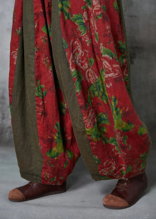Vintage Red Oversized Patchwork Print Linen Harem Pants Spring JK1060