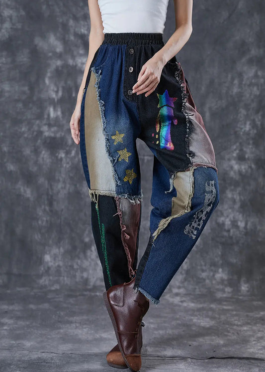 Casual Patchwork Hollowed Out Contrast Regular High Waist Pants FS1582