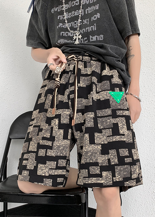 Pockets Letter Dye Tie Black Summer Men Cotton Shorts