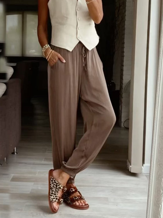 Plain V Neck Casual Lace-Up Jumpsuit CH24