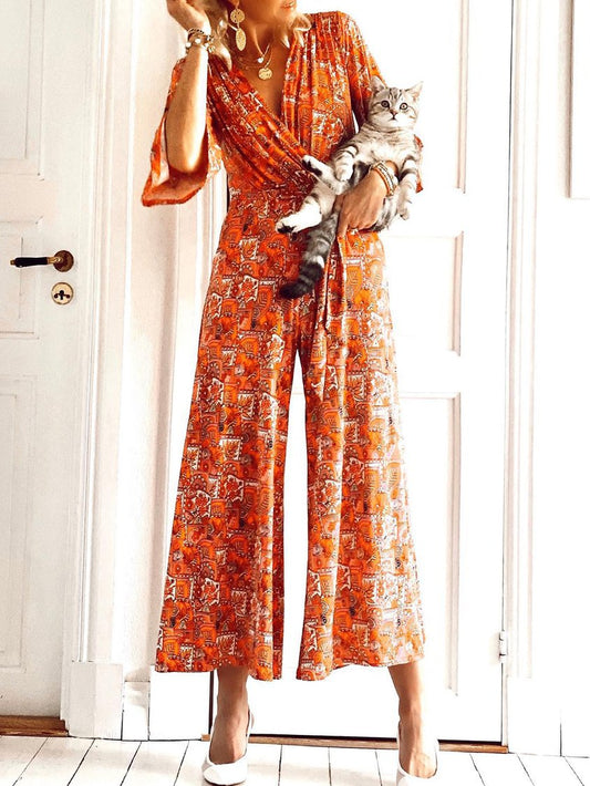 Abstract V Neck Loose Casual Jumpsuit CH13
