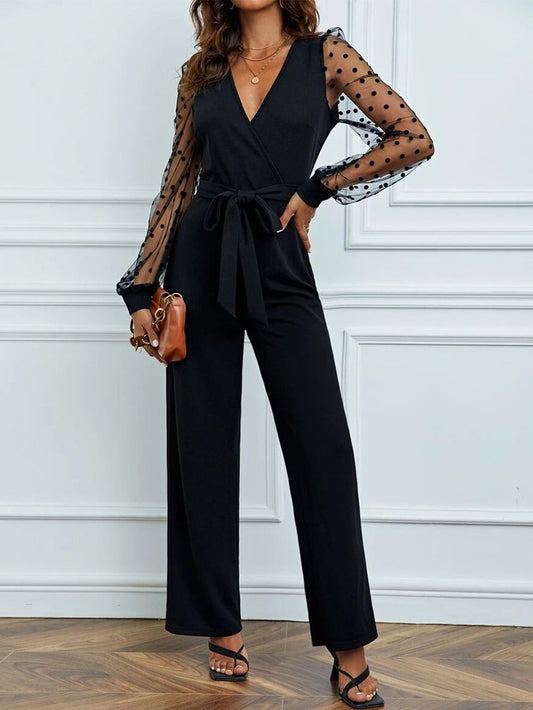 Plain Long Sleeve V Neck Lace-Up Casual V Neck Jumpsuit CH37