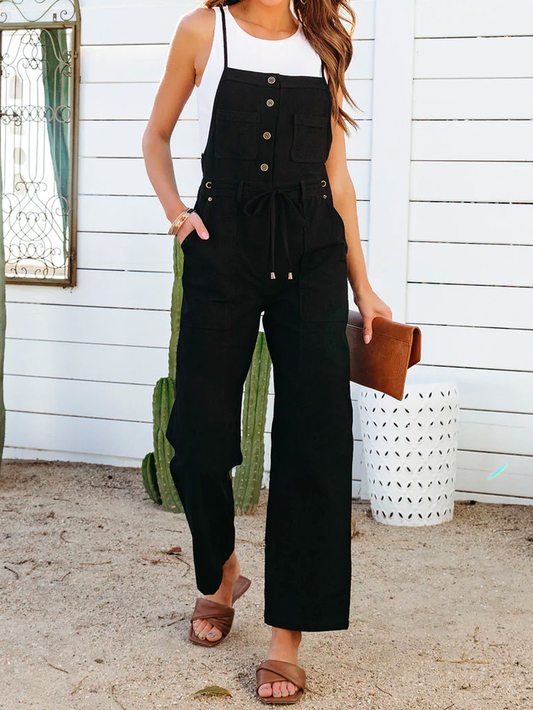 Solid Sleeveless Spaghettie Jumpsuit Wide Leg Pants QAJ60