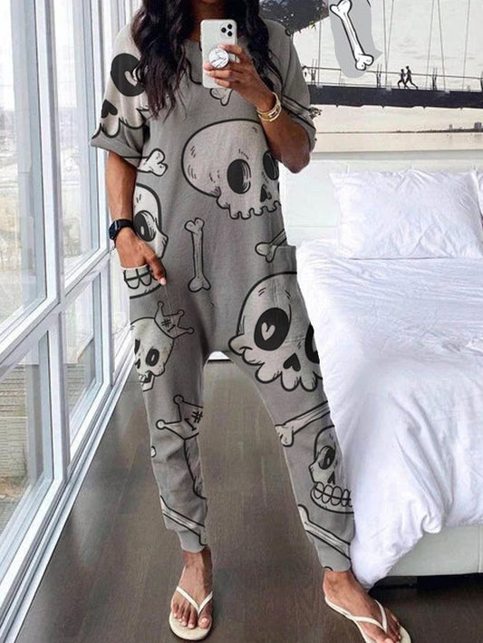 Casual Cross Neck Loose Plain Jumpsuit CH38