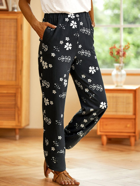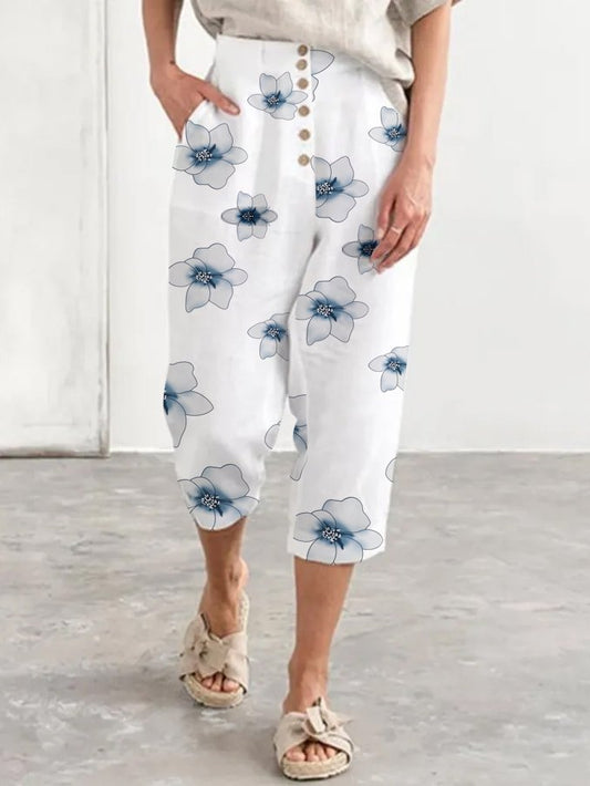 Casual Floral Printed Pockets Women All Season Pants QAW52