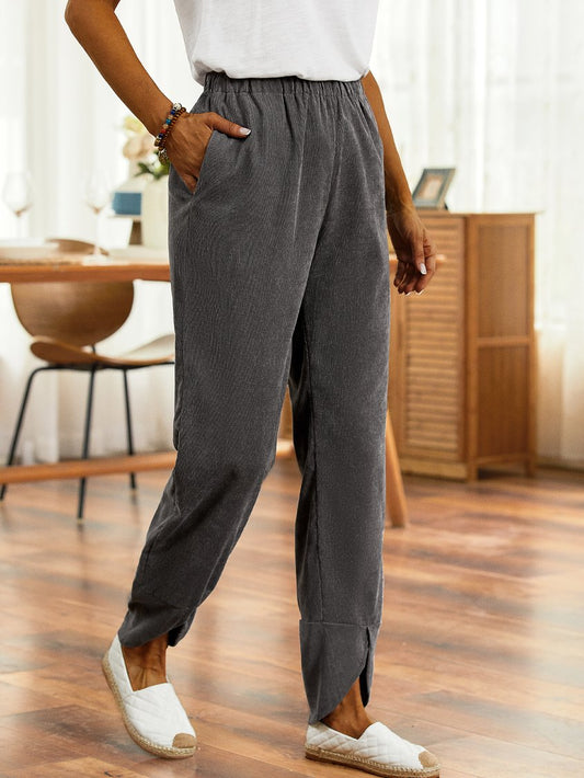 Vintage Plain Pockets Casual Pants QAW55