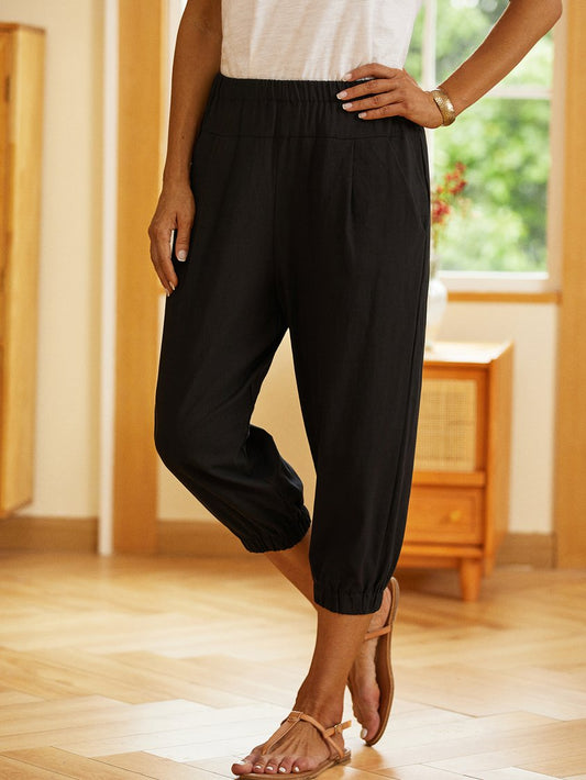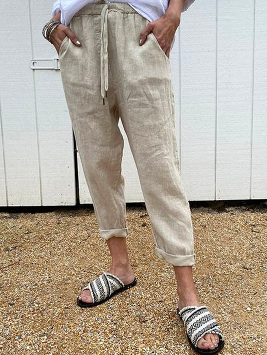 Linen Women Loose Capri Pants With Pockets QAW53
