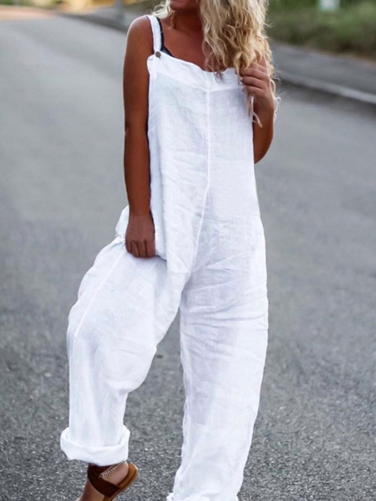 Plain Summer Casual Natural Standard Loose Overall Straight Pants Jumpsuit & Romper for Women QAJ13