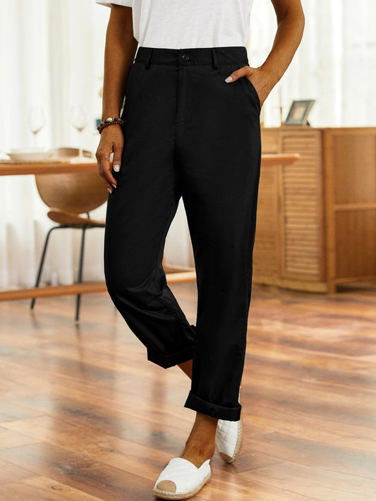 Solid Casual Pockets Pants QAW54