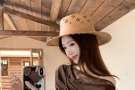 Collared Zip-Up Plain Jacket / Spaghetti Strap Plaid Midi A-Line Dress / High Rise Asymmetrical Layered Lace Skirt / Fringed Bonnet Hat / Belt / Set