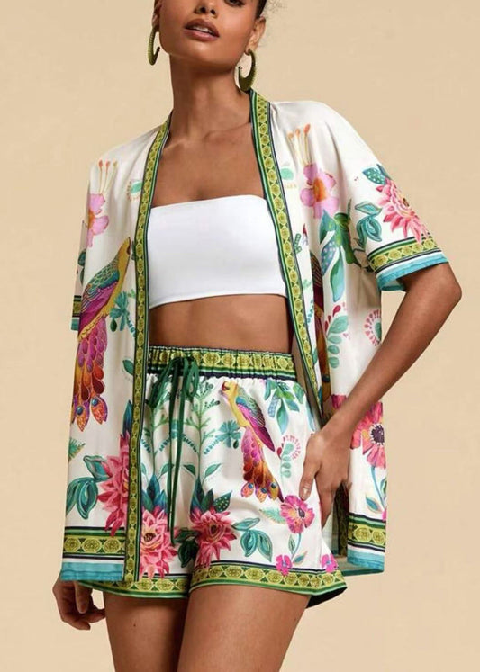 With Two Set Green Pieces Printed And Shorts Short Chrysanthemum