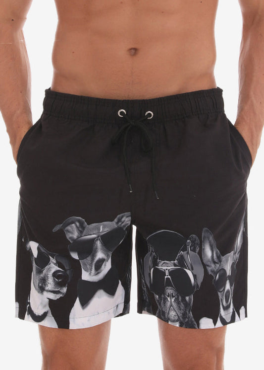 Summer Black Men Ice Stylish Print Silk Elastic Waist Shorts