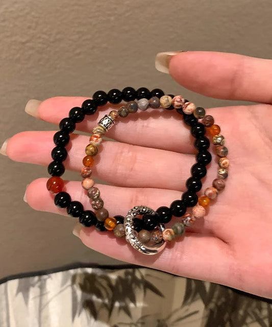 Bracelet Sterling Silk Beads Vintage Charm Ceramics Silver Jade