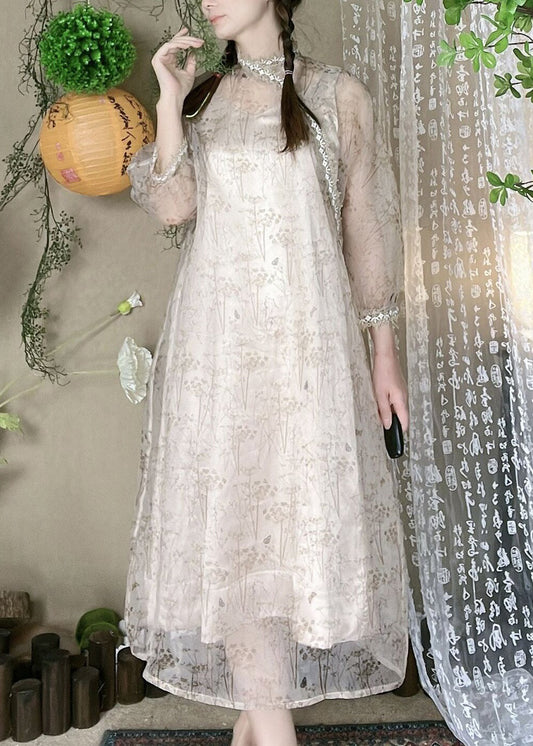 Elegant Print Lace Patchwork Tulle Two Pieces Set Bracelet Sleeve NN037