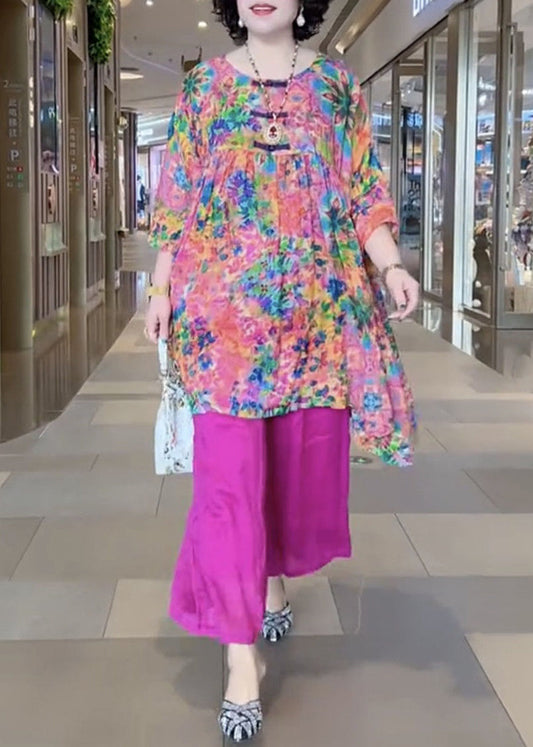 French O-Neck Print Cotton 2 Piece Bracelet Sleeve VV059