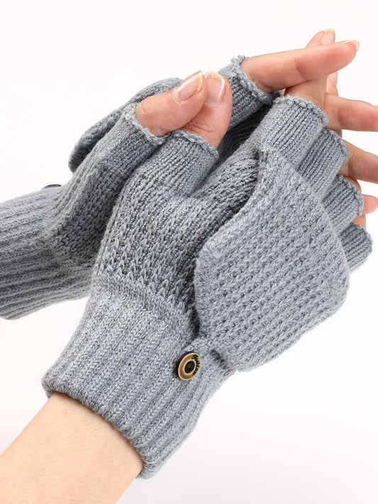 Casual Solid Color Flip-Up Five-finger Gloves Daily Commuting Home Accessories QAR85