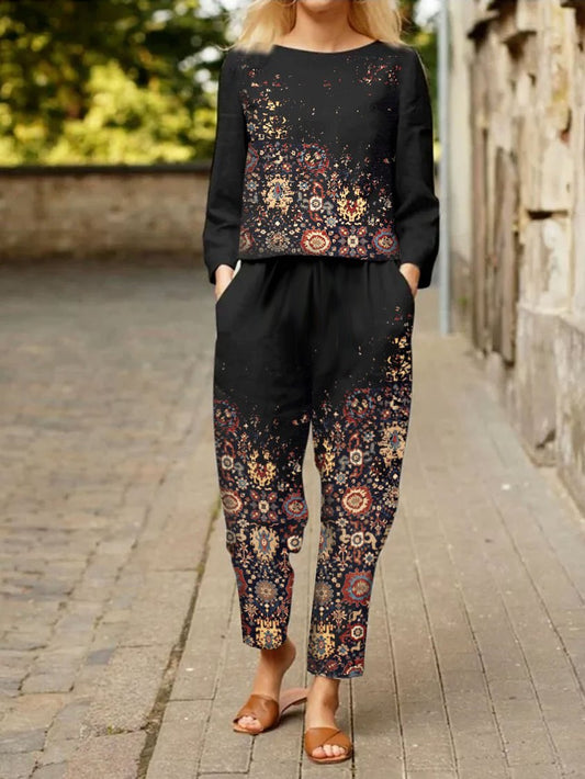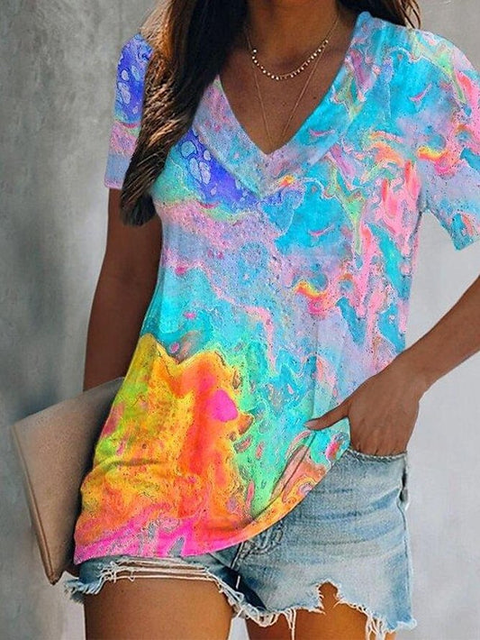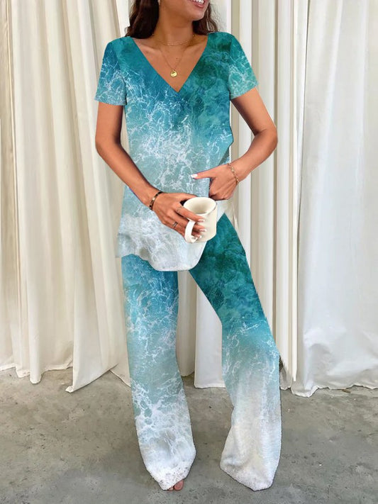 Gradient Pattern V Neck Casual Printing Two-Piece Set QAF24