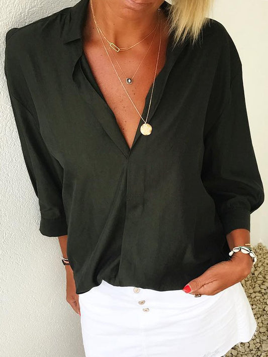 Casual Loose Plain V Neck Two-Piece Set QAF25