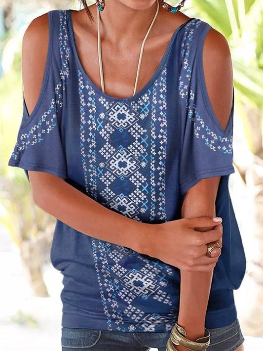 V Neck Split Joint Lace Ethnic Printed Casual Blouses QAF35