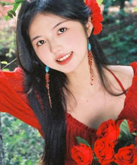 Red Sterling Casual Silver Overgild Tassel Pomegranate Turquoise