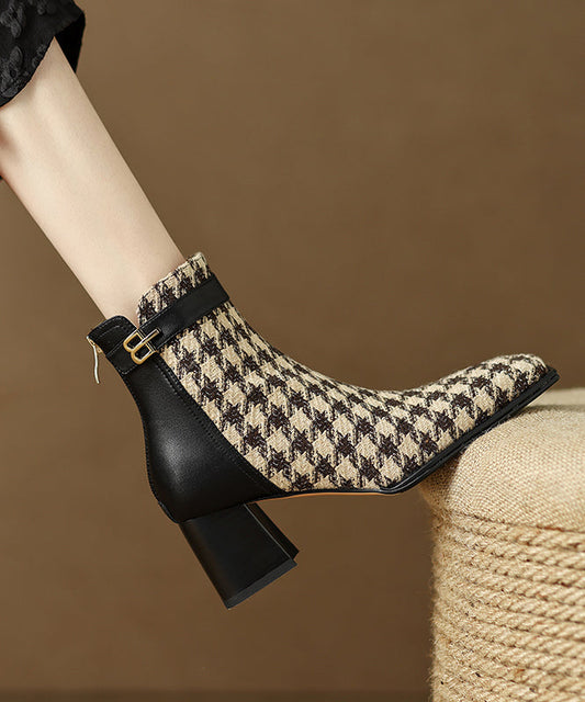 Brown Boots Chunky Cowhide Leather Women Splicing Zippered RD012