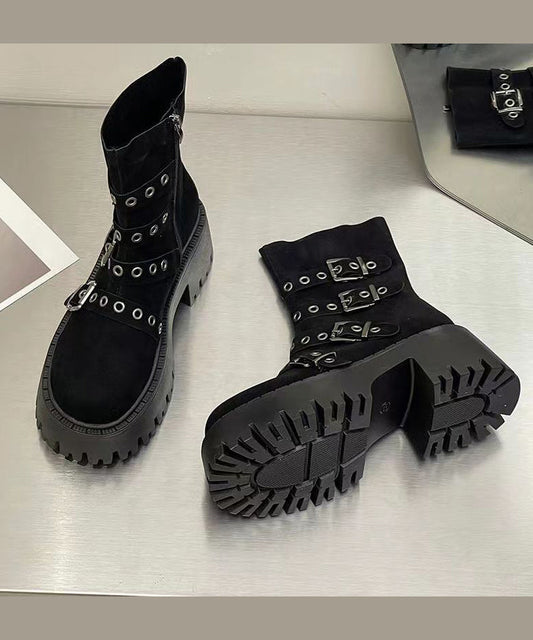 Art Splicing Chunky Boots Mulberry Cowhide Leather RD011