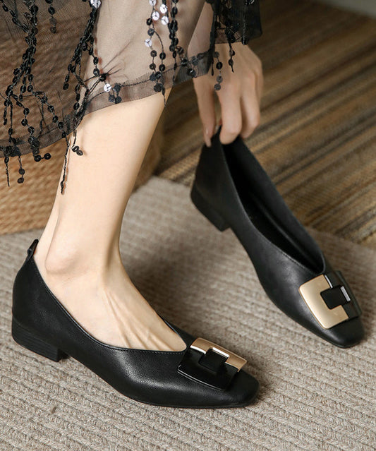 Brown Sandals Chunky Cowhide Leather Retro Splicing Buckle Strap