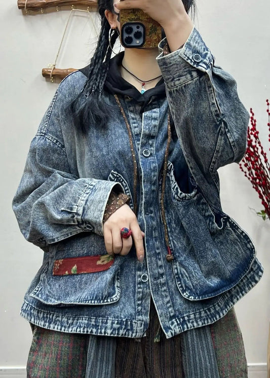 Vintage Blue Button Pockets Patchwork Denim Coat Fall ML3359