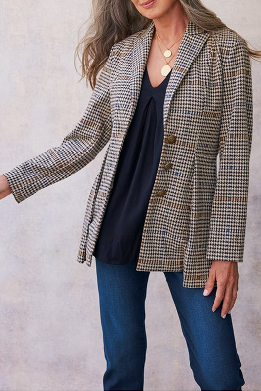 Elegant Plaid Buckle Turn-back Collar Outerwear CE0128