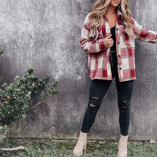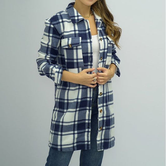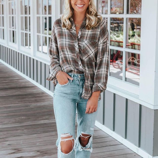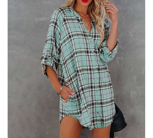 Long-Sleeve Plaid Mini Shirt Dress CA23