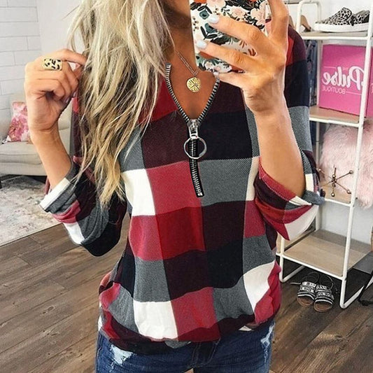 Long-Sleeve Plaid Half-Zip Tee CA29