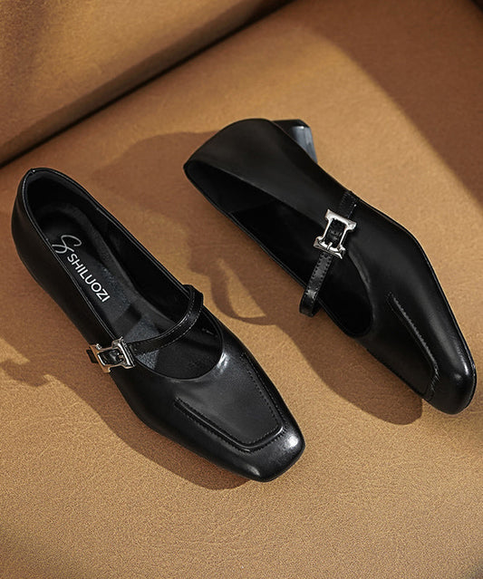 Black Leather Chunky Cowhide Buckle Splicing Strap Classy