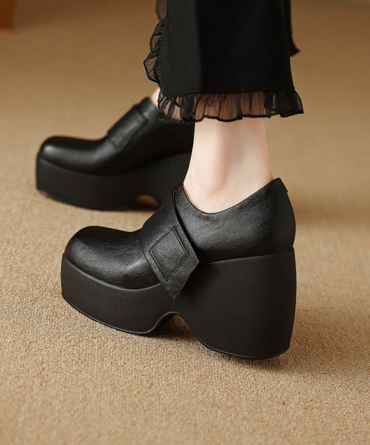 Brown Wedge Heels Platform Cowhide Leather Women Splicing YC002
