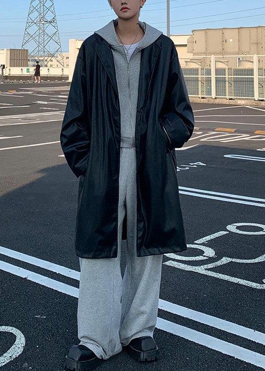 French Coffee Zip Up Oversized Faux Leather Mens Coats Spring RN025
