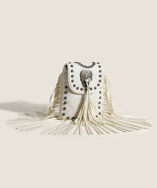Fashion Brown Tasseled Rivet Faux Leather Messenger Bag QF007