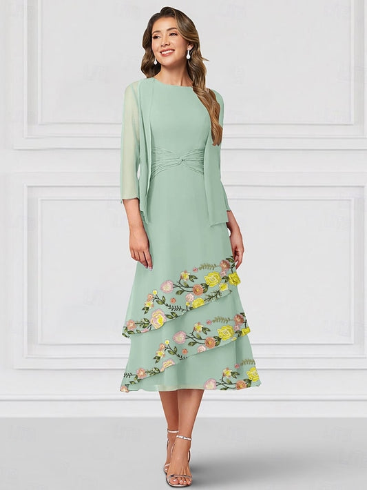 the Mother of Elegant Neck A-Line Two Piece Crew Dress Bride