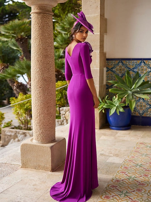 of Bride Mother Elegant Dress Column / the Neck V Vintage Sheath