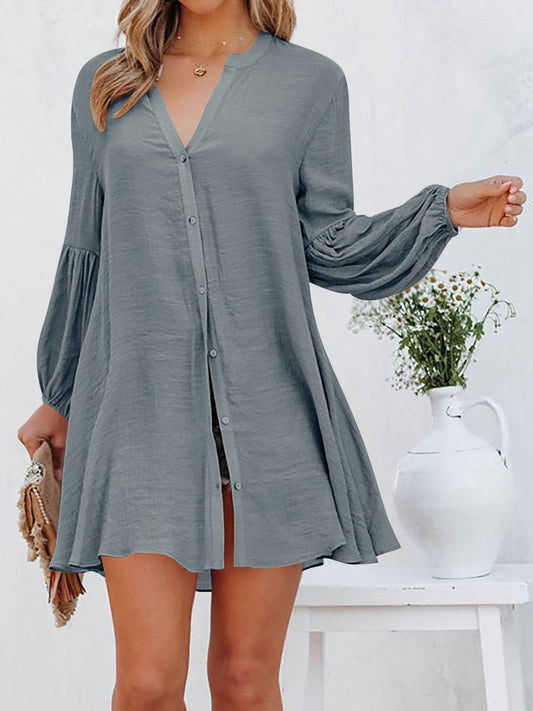Loose V Neck Lantern Sleeve Urban Dress With No WE84