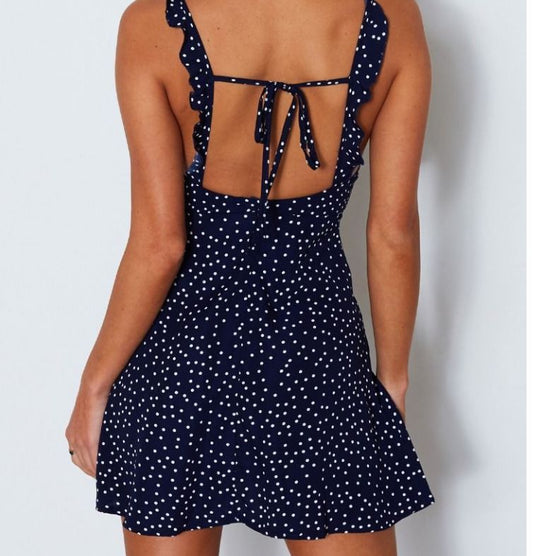 Spaghetti Strap Dotted Mini A-Line Dress vb42