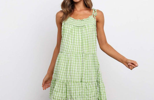 Spaghetti Strap Gingham Tiered Mini Dress vb41