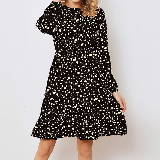 Long-Sleeve Patterned Mini A-Line Dress vb55