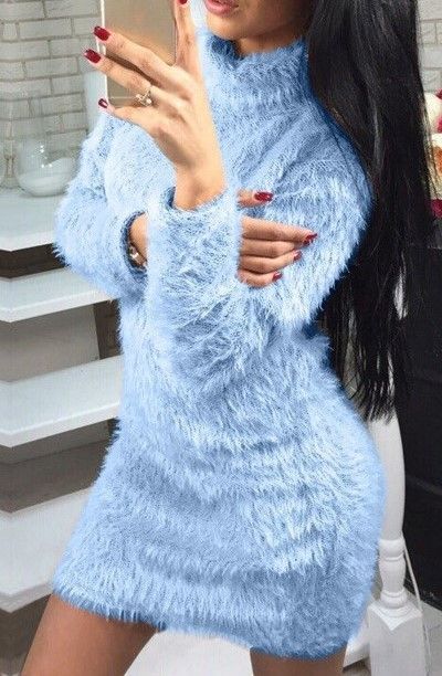 Long-Sleeve Mock Neck Plain Mini Sheath Dress CG14